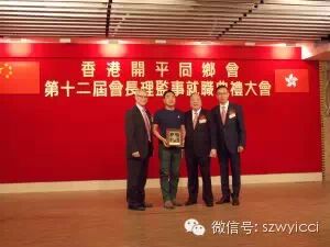 2015年4月17日下午7点,香港开平同乡会在香港九龙红磡海逸道八号海逸皇宫大酒楼,隆重举行第十二届会长理监事就职典礼大会。出席大会的领导、嘉宾和开平同乡近千人。政协江门市委员会赵基耀主席、谭继祖副主席,江门市人民政府易中强副市长,中共开平市委黄耀雄书记、市政府余雪俊市长等领导莅临主礼。深圳市五邑商会应邀出席的领导有:名誉会长谭健生,会长谭仲然,监事长司徒建新,常务副会长林羡祥、甄楚轩、梁宇龙,商会高级顾问、第一届常务副会长兼秘书长李练潮,以及副秘书长黄瑞年等,代表五邑商会到会祝贺。